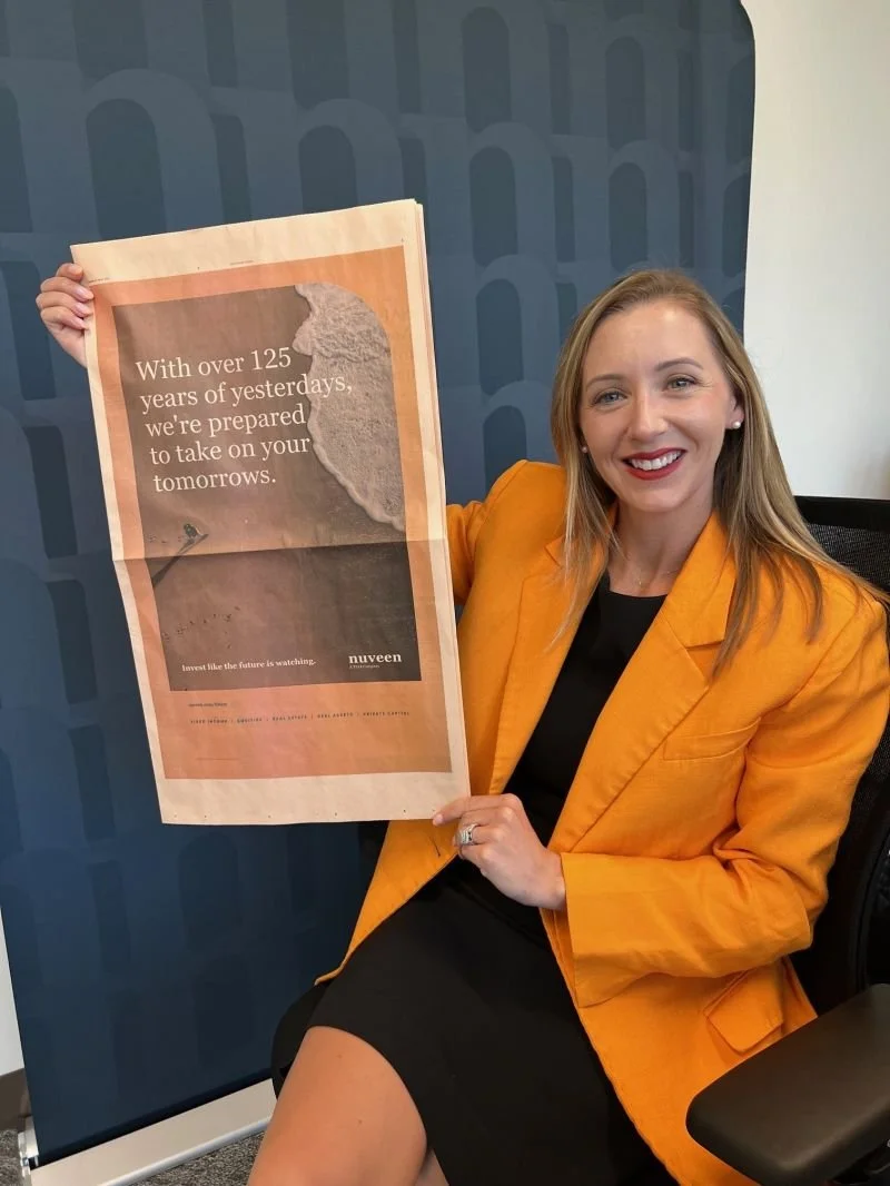 Tara Giuliano, Nuveen CMO, celebrates the launch. The feedback from the Nuveen and TIAA teams has been overwhelmingly positive.